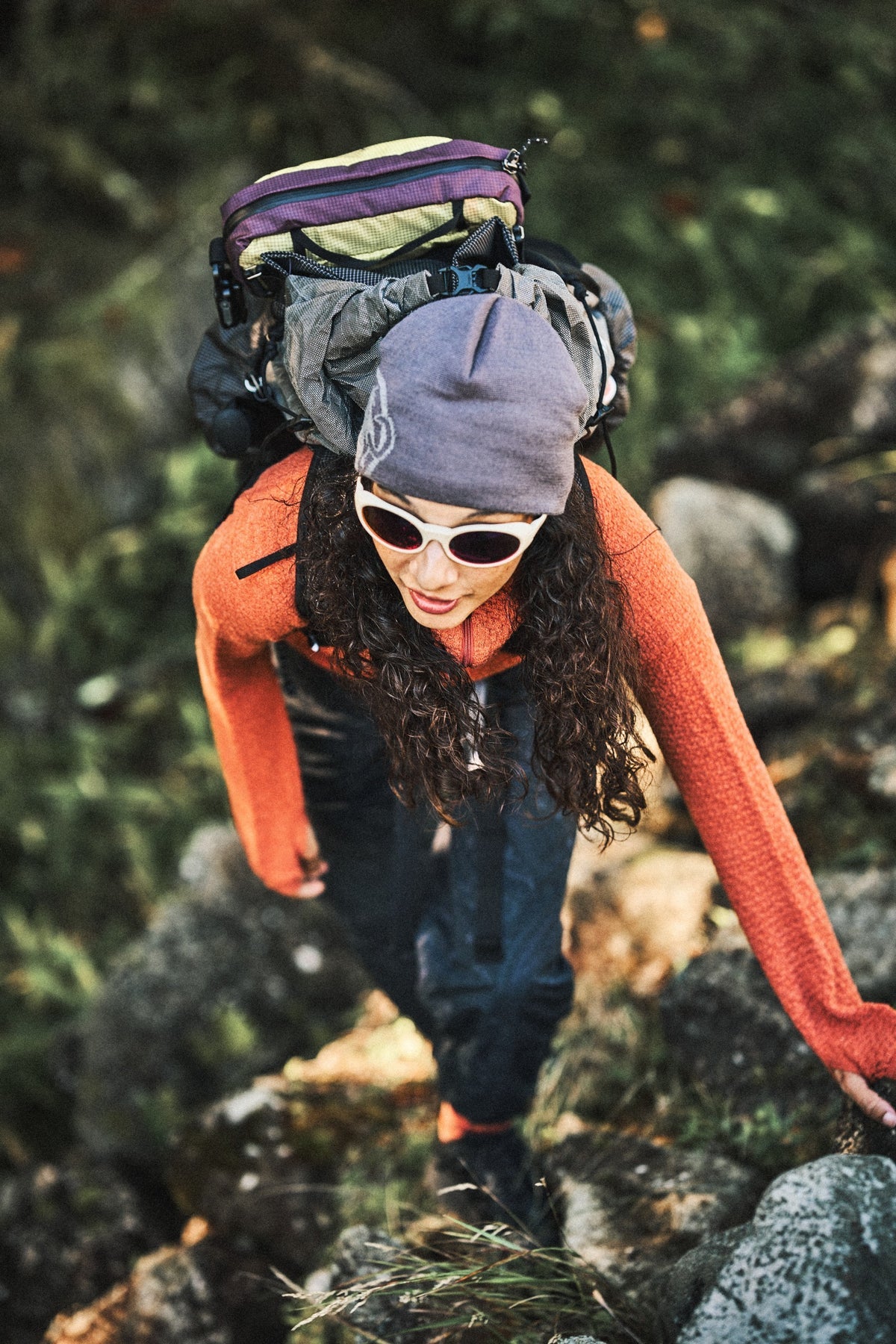 BRING Material™の再生ポリエステルが持つ速乾性でウール100%と比較して早く乾くので、行動中は常に肌をドライに保ちながら、洗濯時も早く乾きます。