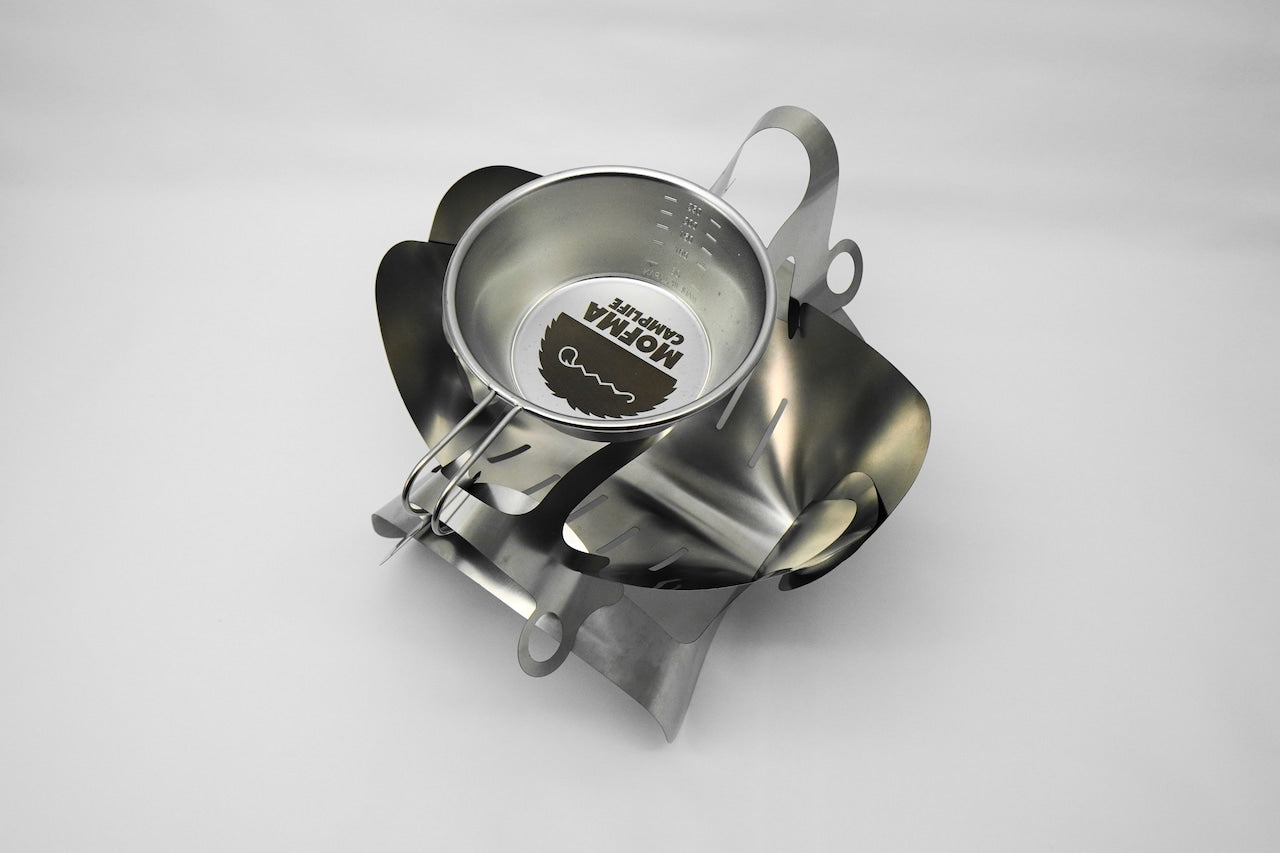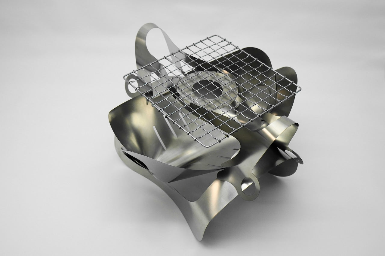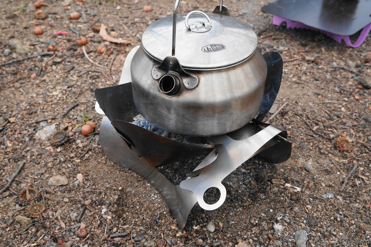 低い状態で焚火台にアルコールバーナーを置き、風防&ゴトクして使用する事も可能です。